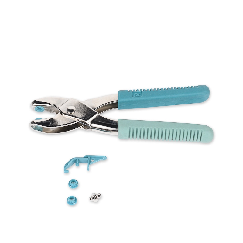 Mångsidig tång för tryckknappar, öljetter och nitar – utan sömnad