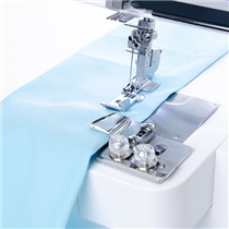 Omsluter den råa kanten av överstygn perfekt för en professionell finish. Skapar en 1" (25 mm) fåll. Kan användas med täcksöm eller kedjesöm.