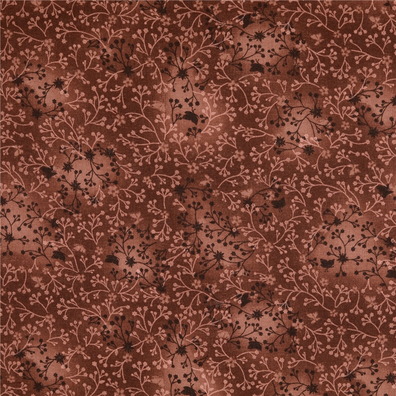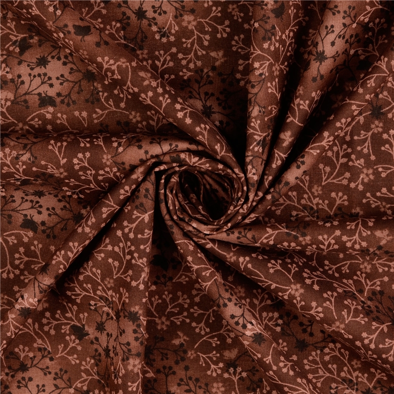 Hem » Tyger » Bomullspoplin – Brun med blomrankor
