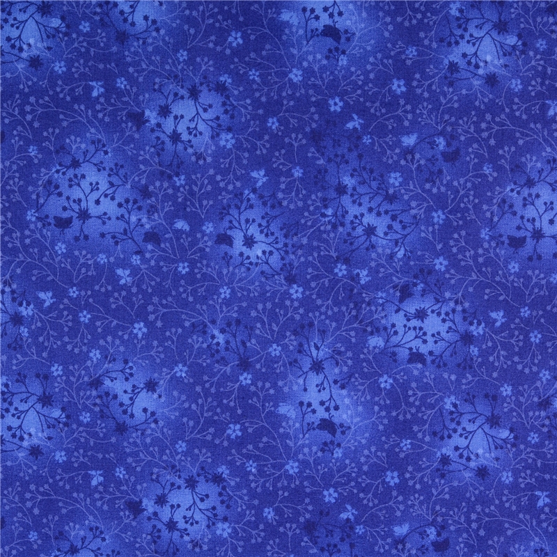 Hem » Tyger » Bomullspoplin – Indigoblå med blomrankor