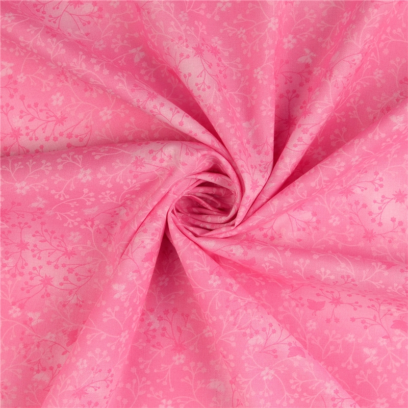 Bomullspoplin – Ljusrosa med blomrankor