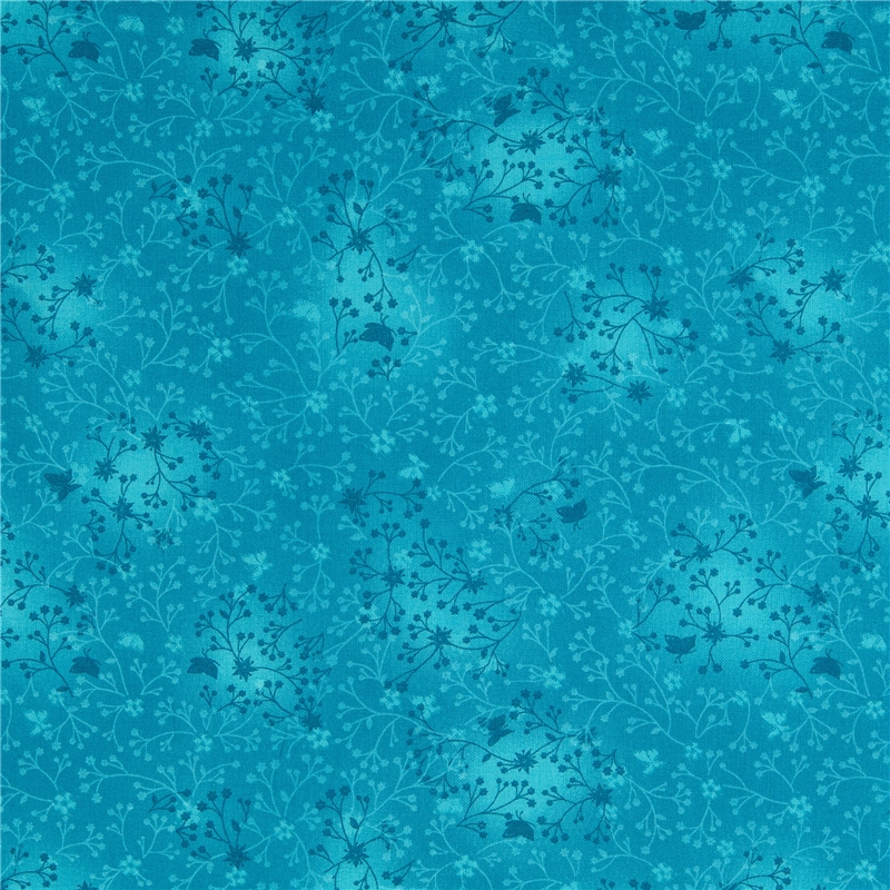 Bomullspoplin – Turkos med blomrankor