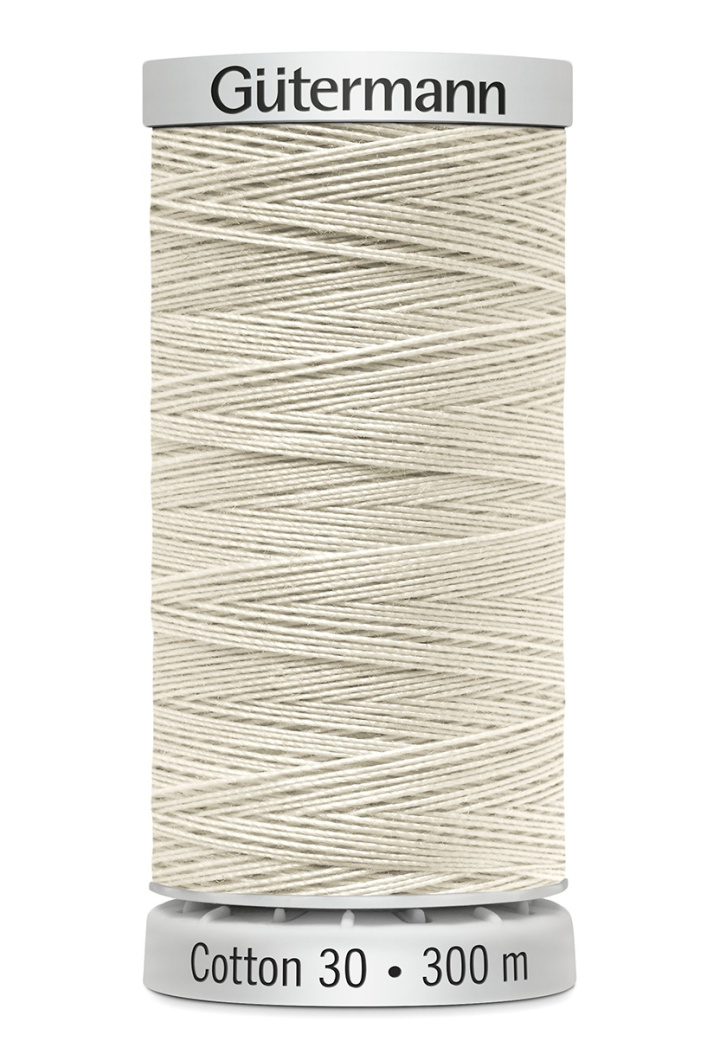 GYtermann 300 meters Cotton 30 Sr en naturlig trOd gjord av 100% merceriserad bomull. Denna trOd Sr en lite grsvre bomullstrOd och Sr idealisk fsr quiltning, stickningar och dekorativa ssmmar mm. LSmplig fsr medium till tunga tyger och mOnga andra material. SymaskinsnOl: Standard 80, 90, Topstitch 80.