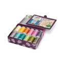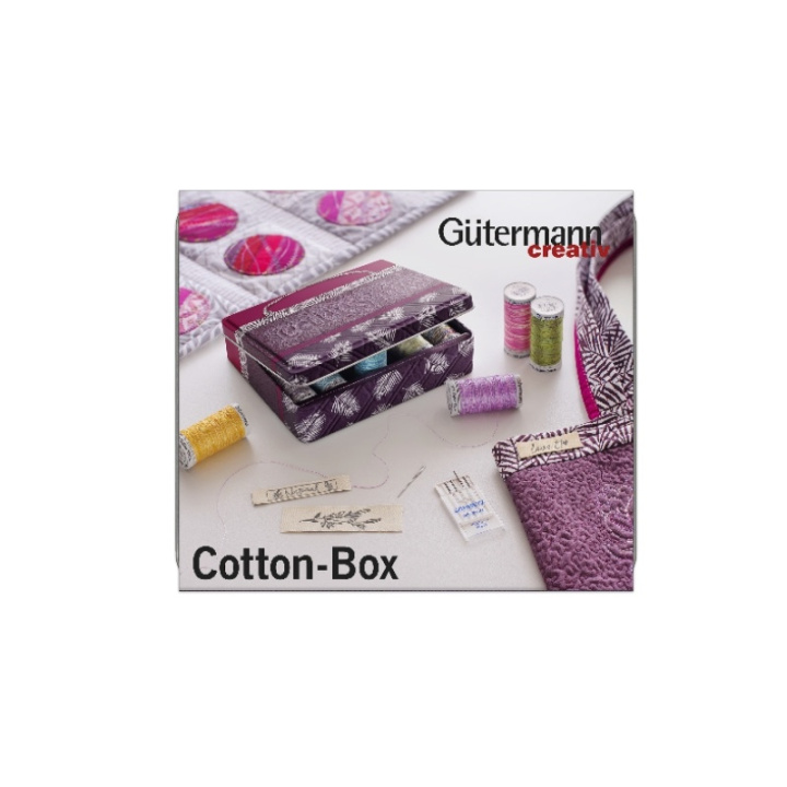 Förvaringsbox med quilt motiv innehållande 12 rullar Cotton 30 300 m bomullstråd i olika färger. Cotton 30 bomullstråd gjorda av naturfibrer är utmärkt att använda när du syr sömmar och dekorsömmar både förhand och med symaskin. Den naturliga bomullen är noggrant bearbetad så att den är knutfri.