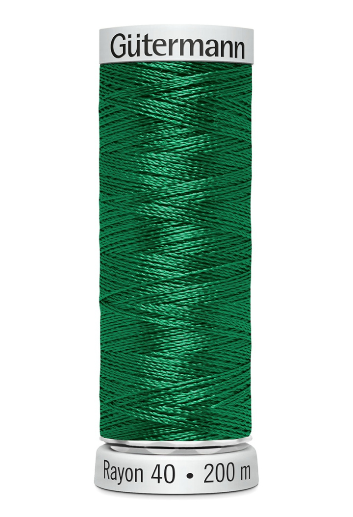 Gütermann 200 meters Rayon 40 är en universell maskinbroderitråd med vacker glans. Dess perfekta broderiegenskaper och utmärkta sömmar gör den idealisk för broderimotiv av hög kvalitet.