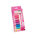 Trådset med Barbie tema innehållande 10 st trådrullar "Alla tygers tråd 100 m" i olika färger samt en markeringspenna. Gütermann 100 meters polyestertråd är utmärkt lämpad för både symaskin-, overlock- och handsömnad, oavsett typ av söm.
