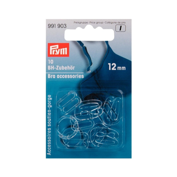 BH-tillbehören med 10 delar innehåller vardera 4 lås, 2 ringar och 4 plastjusterare för att byta ut slitna delar eller för att tillverka egna behåar. I sortimentet finns plastdelarna i transparent plast för bärarbredder från 6 mm till 18 mm. Beroende på designen på bh:n kopplas remmarna till kupor med hjälp av ringar och fästen. Justerarna används för att justera bandlängden fram och bak. Alla delar är tillverkade av robust plast och kan tvättas upp till 60 grader.