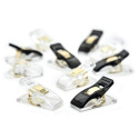30 st tyg klipp av högsta kvalitet. Håller stadigt ihop flera tygstycken eller sömmar enkelt och säkert utan att glida. Kan användas med alla typer av maskiner inklusive overlocker. Varje förpackning innehåller 15 genomskinliga och 15 svarta klämmor med guldfjädrar.