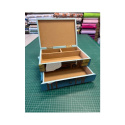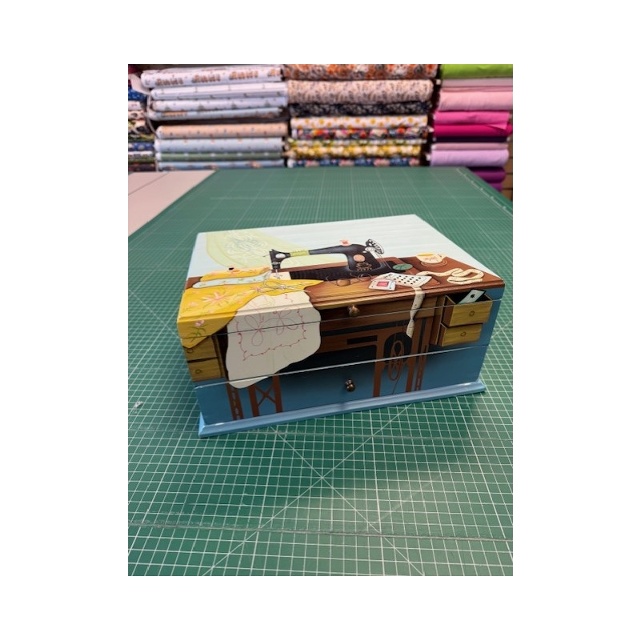 Vackert handmålat syskrin från Prym med färvaring i två våningar.