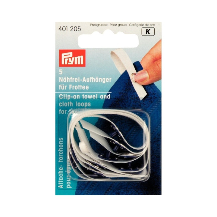 Om hängaren på en frottéhandduk har gått av kan de enkelt ersättas av dessa. De vita polyesterbanden är utrustade med tryckknappar som är speciellt lämpade för att tränga genom tyget.