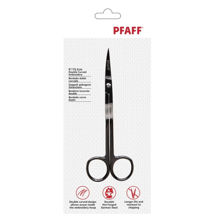 Brodérsax med böjd smal spets för att komma åt runt tygkanter. Passar bra för sömnad med kläder, quilt, handarbete och broderi.
