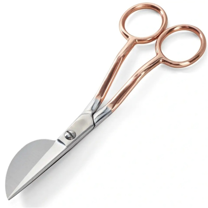 Denna applikationssaxar kommer i en modern roséguldfärg och är idealiska för applikations-, övergjutnings- och quiltningsarbeten. Framför allt är formen på dessa precisionsbroderisaxar särskilt imponerande eftersom den konsekvent förhindrar skador på tyget eller applikationen. Tack vare den nedre kurvan på skärbladet kan det läggas helt plant på tyget - detta gör det enkelt att skära bort överflödigt material under appliceringen. Vinkeln i saxhandtaget säkerställer också att klippbladet kan föras särskilt nära tyget.