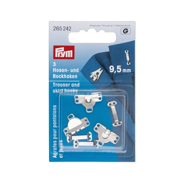 Byx- och kjolhaken är idealisk när det gäller att stänga byxor och kjolar snabbt, enkelt och nästan osynligt. Byx- och kjolhaken är diskret till utseendet och tillverkad av rostfri metall, och gör sig särskilt bra med sin släta yta och rundade kanter - detta möjliggör bekväm hantering vid öppning och stängning. Att sy är också enkelt eftersom det finns tre syhål i byxhaken och hållaren har även två hål. Byx- och kjolhakarna finns i silver och svart samt i olika bredder.