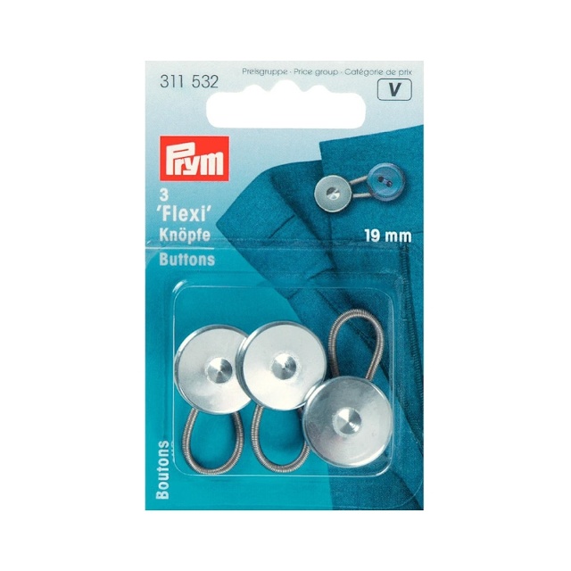 Om kragen eller midjestorleken varierar finns det flexiknappar i metall. Med sin flexibla fjäderstålsögla fästs de i den vanliga knappen och kan sedan bekvämt stängas med knapphålet. De praktiska Flexi-knapparna finns i storlekarna 10, 15 och 19 mm eller i set om 3 i storlekarna 15 mm och 19 mm.