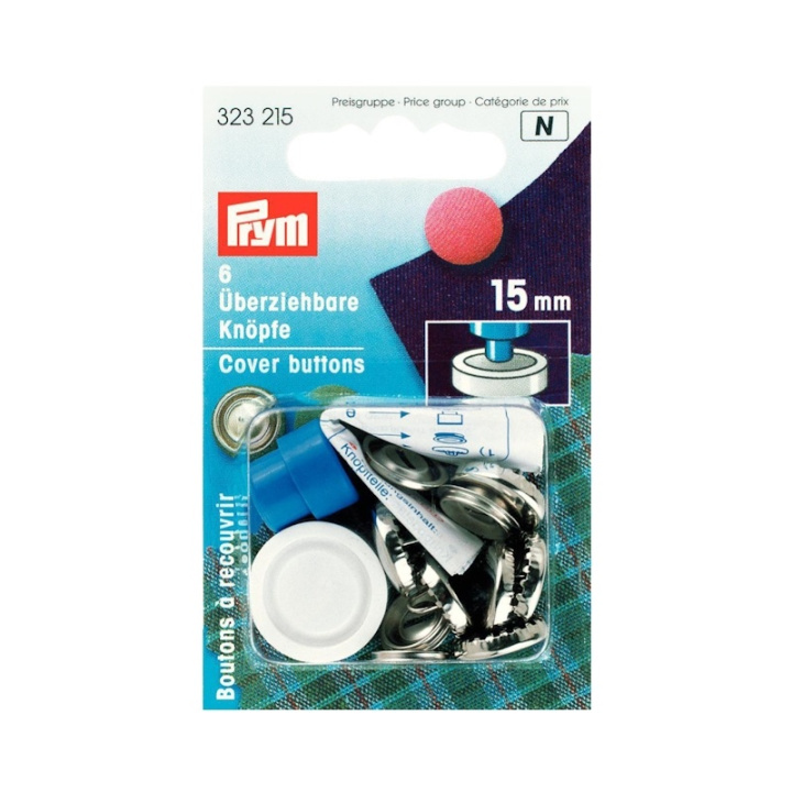 Prym erbjuder knappformar tillverkade av rostfri metall med en robust trådögla i olika storlekar med lämpliga verktyg. Detta gör det ännu enklare att producera individuella knappar för dina egna skapelser. En tandad kant på insidan av knappen hjälper till att hålla det jämnt sträckta tyget på plats. De bifogade instruktionerna visar hur det fungerar. Det finns även en klippmall på förpackningen för att skära ut tyget i en cirkulär form. Beroende på vilken textil som används kan de färdiga knapparna tvättas i upp till 60 grader.