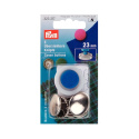 Prym erbjuder knappformar tillverkade av rostfri metall med en robust trådögla i olika storlekar med lämpliga verktyg. Detta gör det ännu enklare att producera individuella knappar för dina egna skapelser. En tandad kant på insidan av knappen hjälper till att hålla det jämnt sträckta tyget på plats. De bifogade instruktionerna visar hur det fungerar. Det finns även en klippmall på förpackningen för att skära ut tyget i en cirkulär form. Beroende på vilken textil som används kan de färdiga knapparna tvättas i upp till 60 grader.