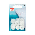 De vita tvättknapparna i plast är idealiska för arbets- eller hushållsrockar, förkläden och för sänglinne eftersom sådana kläder ofta måste tvättas i 95 grader. De är både strykbara, mangelfasta och kan torktumlas. Prym erbjuder dem med två syhål i storlekarna 15 mm, 17 mm och 18 mm.
