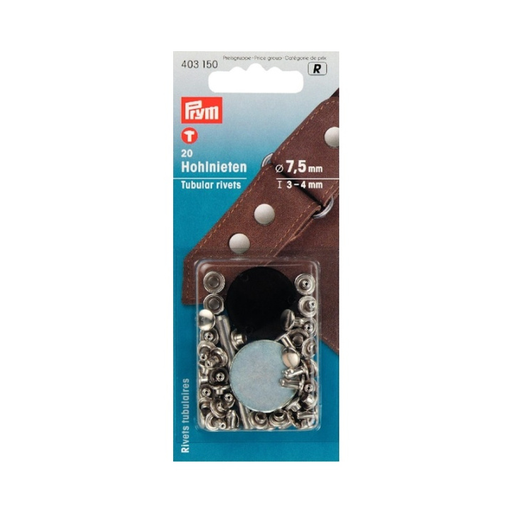 Dessa rostfria nitar används för nitning av tjockare material som läder. Passar material med en tjocklek på 3-4 mm. Nitarna fästes enkelt med det medföljande verktyget och en hammare.