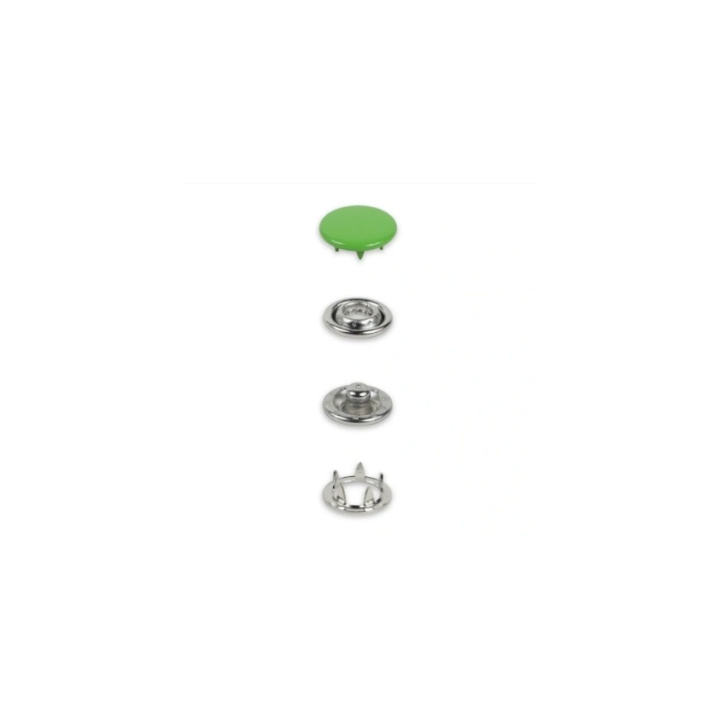 Den färgglada ytan på Prym Jersey-tryckknappar är verkligen iögonfallande och fungerar med alla regnbågens färger! Med 11 olika färger att välja mellan hittar du alltid det du behöver. Baserna finns i kompletterande metallic nyanser för att knyta ihop looken: guldfärgad med gult och orange; silverfärgad med rött, vitt, rosa, mint, ljusgrönt och lavendel; och gunmetal med svart, brunt och marinblått. Upptäck alla möjliga användningsområden: när du behöver en lättförslutande stängning för tunna eller stretchiga tyger är Prym Jersey-tryckknappar med 12 mm diameter perfekta. Skjortor, haklappar, små väskor, babybodyer, klänningar och luftiga jackor för sommaren, för att bara nämna några. Prym Jersey-tryckknappar är Oeko-Tex Standard 100-certifierade. Jersey-tryckknappar fästs på tyget utan sömnad. Ha ditt VARIO Creative Tool (390 903, 390 906, 390 907 & 390 908) och verktygssetet för Prym Jersey-tryckknappar (673 142) redo att användas med dina rostfria mässingstryckknappar. Det finns inget behov av att förstansa tyget eftersom den tandade ringen enkelt griper tag i det. Alternativt kan du använda en VARIO-tång (390 900, 390 901 & 390 902) med verktygssatsen för Prym Jersey-tryckknappar (673 142).