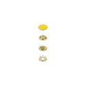 Den färgglada ytan på Prym Jersey-tryckknappar är verkligen iögonfallande och fungerar med alla regnbågens färger! Med 11 olika färger att välja mellan hittar du alltid det du behöver. Baserna finns i kompletterande metallic nyanser för att knyta ihop looken: guldfärgad med gult och orange; silverfärgad med rött, vitt, rosa, mint, ljusgrönt och lavendel; och gunmetal med svart, brunt och marinblått. Upptäck alla möjliga användningsområden: när du behöver en lättförslutande stängning för tunna eller stretchiga tyger är Prym Jersey-tryckknappar med 12 mm diameter perfekta. Skjortor, haklappar, små väskor, babybodyer, klänningar och luftiga jackor för sommaren, för att bara nämna några. Prym Jersey-tryckknappar är Oeko-Tex Standard 100-certifierade. Jersey-tryckknappar fästs på tyget utan sömnad. Ha ditt VARIO Creative Tool (390 903, 390 906, 390 907 & 390 908) och verktygssetet för Prym Jersey-tryckknappar (673 142) redo att användas med dina rostfria mässingstryckknappar. Det finns inget behov av att förstansa tyget eftersom den tandade ringen enkelt griper tag i det. Alternativt kan du använda en VARIO-tång (390 900, 390 901 & 390 902) med verktygssatsen för Prym Jersey-tryckknappar (673 142).