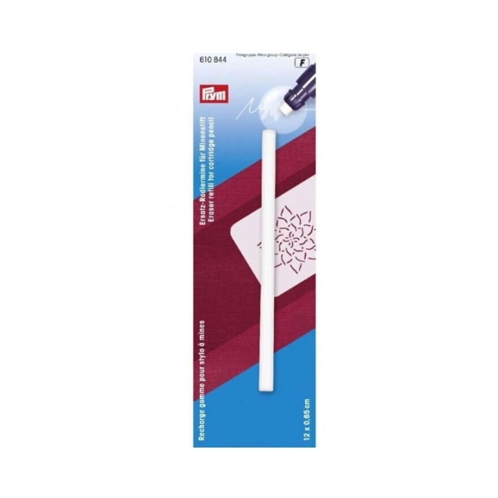 Suddgummi refill till Pryms stiftpennor 610 846 och 610 840. Suddgummit klipps till i lagom stora bitar och räcker till flera påfyllningar.