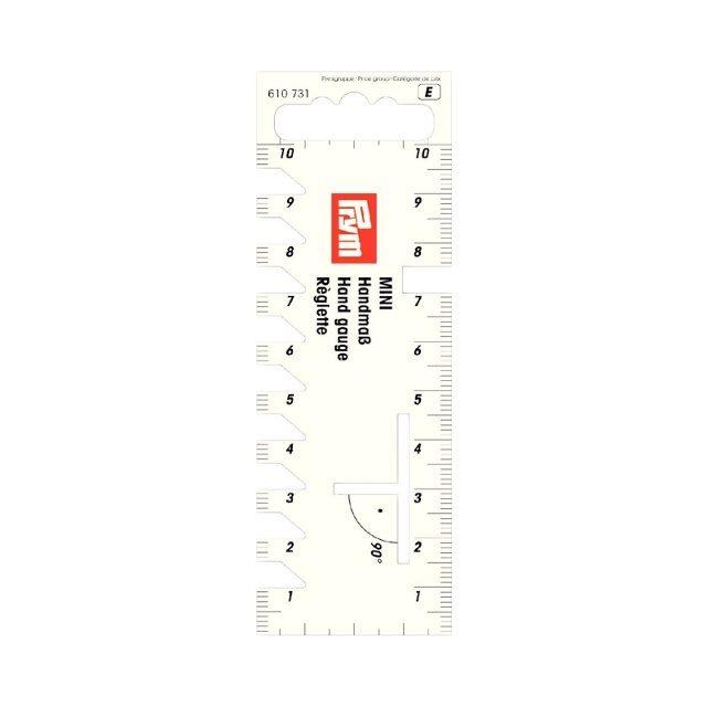 Denna pfiffikus är mycket lämpad för att arbeta med direkt på symaskinen. På båda sidor finns en centimeterskala med stygnlängdskontroll och markering för 90 ° vinklar.