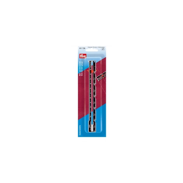 Med sin multifunktionalitet förenklar det lilla praktiska handmåttet från Prym många mät- och rituppgifter som kan göras direkt på symaskinen eller vid stickning och virkning. Med det röda plastreglaget kan fållmått och knapphålsavstånd förinställas och enkelt överföras. Genom ett hål i linjalens övre hörn är det möjligt att fixa måttet och använda det som en kompass för att rita cirklar och bågar. Skalan är indelad i centimeter och tum, där tumsidan har ytterligare skåror som gör markeringen lättare. Att mäta insydda veck är också möjligt med detta praktiska sytillbehör.