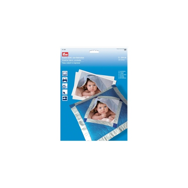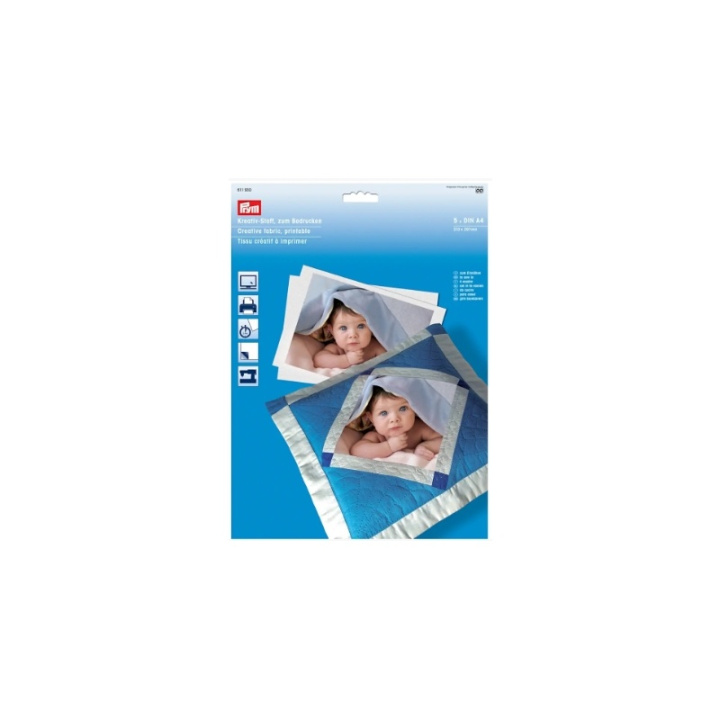 Det kreativa tyget från Prym kan tryckas i hög kvalitet med vilken standard bläckstråleskrivare som helst. Det gör att bilder eller individuella grafiska mönster kan tas med i beräkningen vid sömnad och lapptäcke. De fem DIN A4-arken är gjorda av högkvalitativ vit Pima-bomull och ett bakpapper. Efter att trycket har torkat i 2 minuter kan bakpappret tas bort och motivet fixeras genom att stryka. Det egendesignade tyget är nu tvättbart och redo för vidare bearbetning. Med det kreativa tyget kan alla lapptäcksarbeten få en särskilt individuell touch.