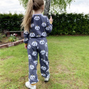Jumsuiten är ett praktiskt och bekvämt plagg för lek, aktivitet och avkoppling, med lös passform och resår i midjan. Den är lätt och ledig, och enkel att röra sig. Overallen tas på och av genom halsöppningen.