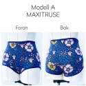 A. Maxitrosor: Breda och väl täckande över rumpan och i grenen, och höga i midjan.