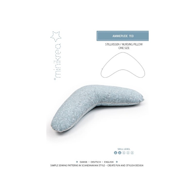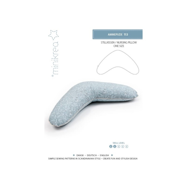 Modern och praktisk amningskudde som ger bra stöd, när du ammar barnet. Här sydd med härlig passpoal längs kanten, för att ge amningskudden en stilren och lyxig look. Mönstret innehåller ett mönster för amningskudden och en inre monteringskudde, båda med dragkedja.
