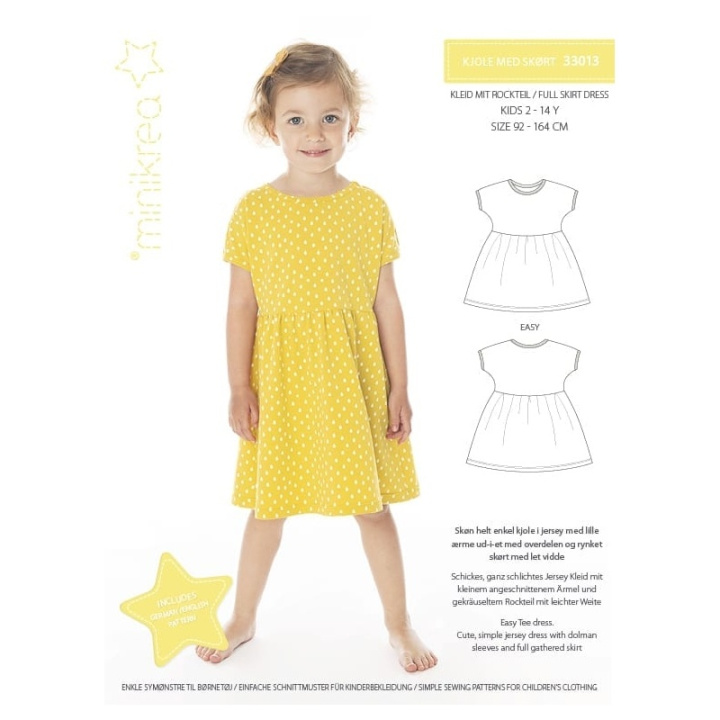 Easy Tee-klänningen är en söt, enkel jerseyklänning med dolmanärmar och heldragen kjol. Lätt att sy och bekväm att bära, tjejerna älskar det. Perfekt för roliga tryckta tyger.