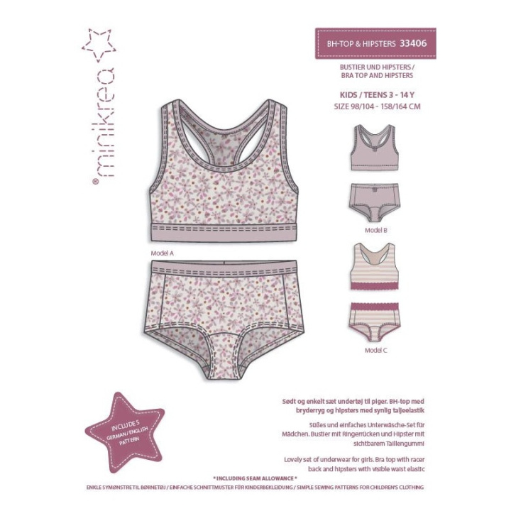 Härligt set med underkläder för flickor. BH-topp med brottarrygg och hipsters med synlig midjeresår.