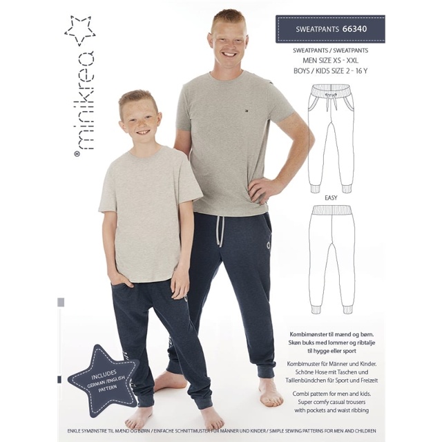 Kombinerat mönster för män och barn. Mysiga byxor med fickor och mudd både för att slappa i och sporta i.