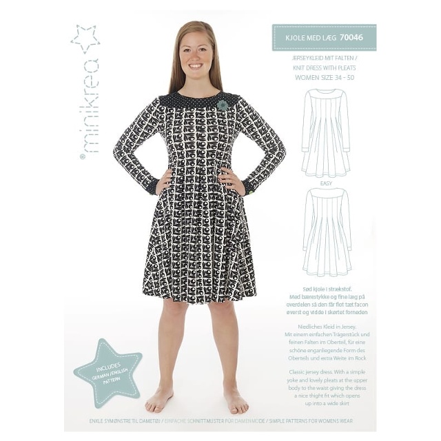 Härlig trikåklänning med ok och veck, som sys ner på livstycket, ger full vidd till kjolen.
