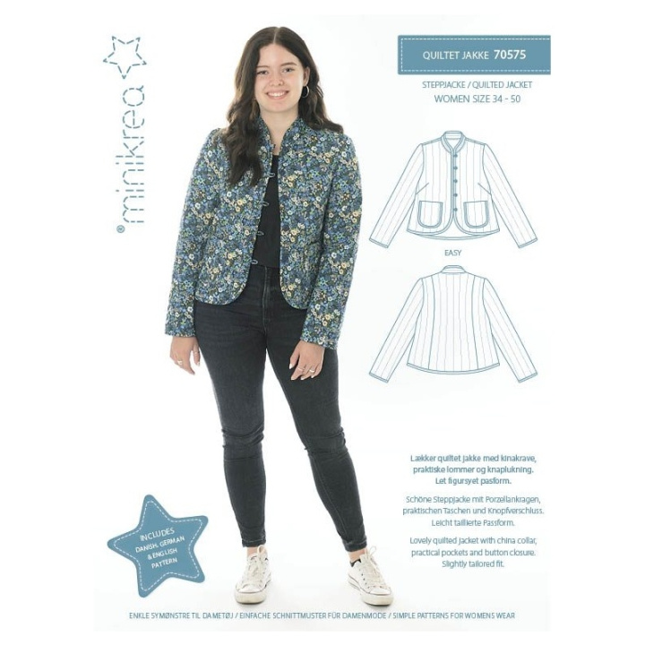 Härlig quiltad jacka med porslinkrage, praktiska fickor och knappstängning. Något skräddarsydd passform.