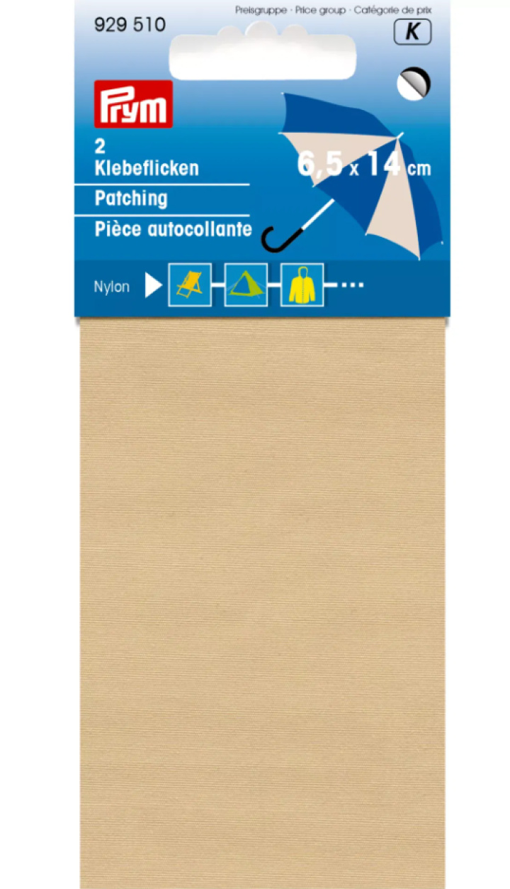 Dessa självhäftande lappar tillverkade av 100 % polyamid är idealiska för att reparera hål, revor och slitna områden på nylon, polyamid och högpresterande tyger. De kan användas för att snabbt och enkelt reparera regnjackor och -byxor, paraplyer och tältpresenningar i en mängd olika färger. Klipp ut en lämplig bit från lappen och applicera den på det rena, fettfria och torra området. Det är allt. De självhäftande lapparna är vattenavvisande och tvättbara upp till 30 grader Celsius. En lapp av varje medföljer på kortet.