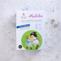 Sticka Madickens symboliska accessoarer. En rosett, sockor och basker. Små detaljer som för dig till vackra Junibacken. Allt du behöver ingår i kiten från Astrid Lindgren & Ilon Wikland.