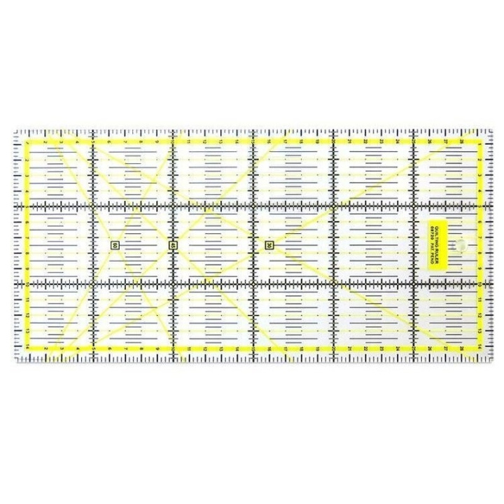 Användbart verktyg för att mäta och göra raka snitt. Materialet är genomskinligt och ger en tydlig bild av materialet under.