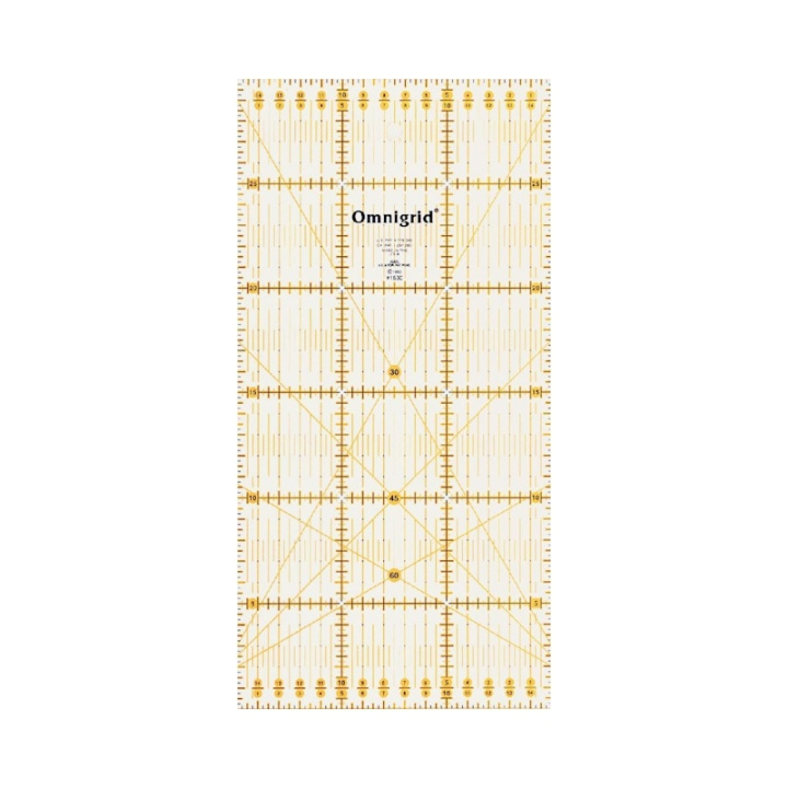 Quiltlinjal med markering för 30°, 45° och 60° vinkel.