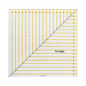 Fyrkantig quiltlinjal med instruktionsbok om grundläggande skärtekniker.