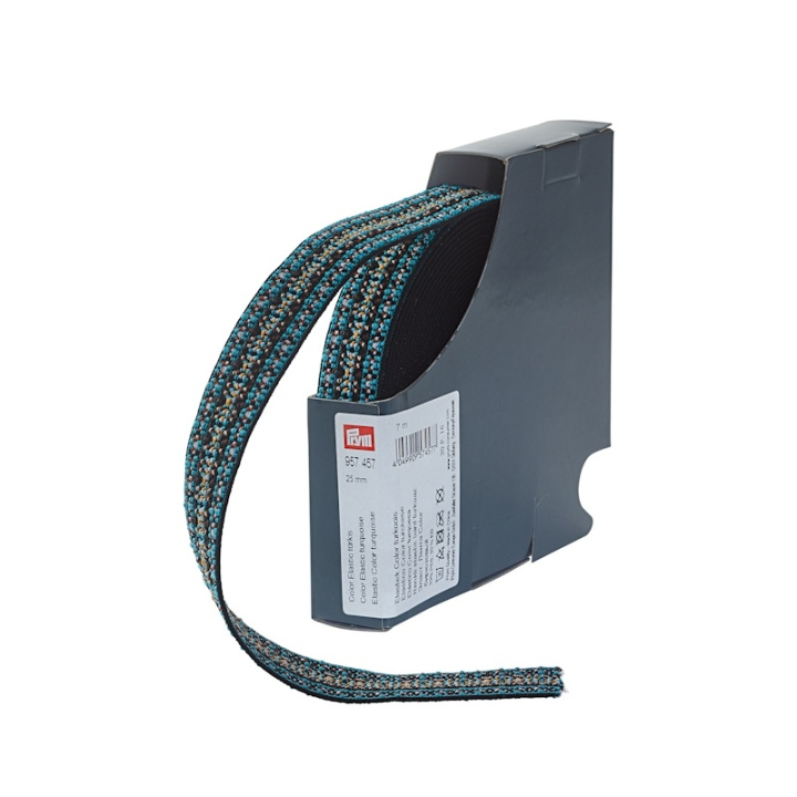 Color Elastic-banden låter kreativiteten flöda. De färgglada resårbanden från Prym är väldigt dekorativa på jerseytyger. Banden är också ett visuellt blickfång som byx- eller kjolmanschetter. Espadriller, väskor, mobiltelefonfodral och mycket mer kan också skräddarsys med enkla medel för att uppnå en stilfull effekt. Varje hantverksidé kan uppgraderas, t.ex. bilder, tavelramar, inbjudningskort eller armband. Det elastiska bandet är tvättbart upp till 30 grader.