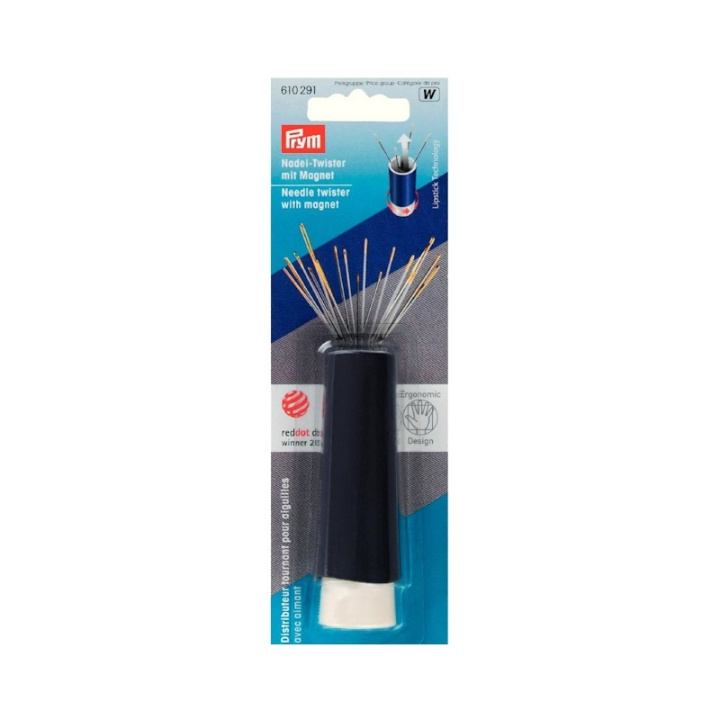 Alla synålar och stoppnålar är nu säkert förvarade, eftersom denna lila nålvridare från prym.ergonomics-serien säkerställer skyddad förvaring och bekväm tillgång till sy- och stoppnålar. Nålarna skruvas upp i en solfjäderform med hjälp av en roterande mekanism vid basen av nålvridaren. Alla nåltyper och storlekar känns igen med ett ögonkast och kan enkelt användas vid behov. Inuti nålvridaren ser en magnet till att nålarna är i rätt läge. Inklusive en snygg kork som säkerställer att nålarna stannar kvar i nålvridaren med hjälp av en klickstängning. Nålvridaren är idealisk för sortering av olika nåltyper och storlekar upp till en längd på 64 mm. Den praktiska och snygga nålvridaren belönades med Red Dot Design Award 2011.