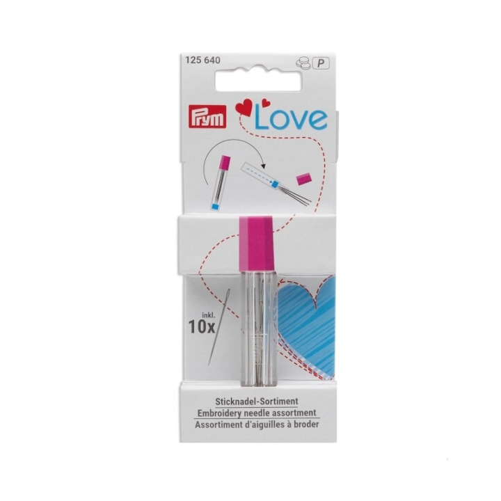 Perfekt förvaring, omedelbart till hands: Fodralet till detta broderinålssortiment i Prym Love-serien innehåller 10 brodernålar med och utan spets och är lämplig för förvaring av broderinålar upp till fem centimeter långa. En inbyggd magnet håller nålarna säkra - även när du tar bort en nål. Om fodralet hålls pekande diagonalt nedåt kommer nålarna fram, men de hålls säkert på plats av de bifogade magneterna. Den sexkantiga formen ger fodralet stabilitet och hindrar den från att rulla av arbetsytan. Den fräscha rosa korken ger utmärkt skydd. Ingen broderifan bör vara utan detta praktiska verktyg.