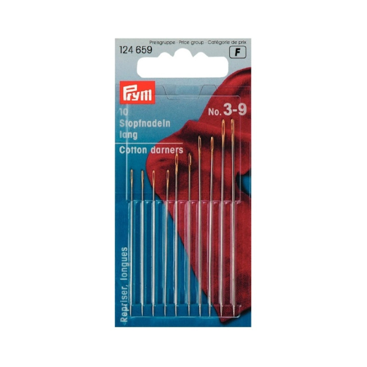 Prym erbjuder stoppnålar av härdat stål i olika längder. Korta nålar för stoppning av ullplagg och strumpor, samt långa nålar för finare stoppningsuppgifter. Nålarna har den typiska avsmalnande formen som en handsynål, men är mycket större i storlek och har därför ett proportionellt anpassat större öga. Detta möjliggör också trädning av kraftigare garn och ull. Ytan på stoppnålarna är gradfri och rostbeständig. Det ser till att nålen lätt kan glida genom materialet.