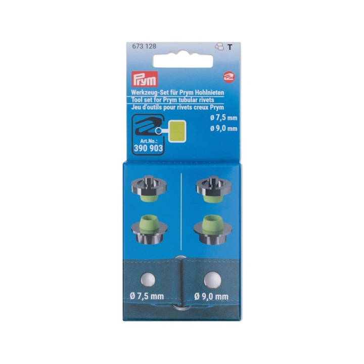 Vario Creative Tool är perfekt för att fästa tubulära nitar på läder, jeans eller andra tjockare tyger med olika materialtjocklekar. För att göra det erbjuder Prym en särskild verktygsuppsättning. Den innehåller 4 nitverktyg för rörnitar med 7,5 och 9 mm i diameter samt detaljerade steg-för-steg-instruktioner. För att säkerställa att varje projekt blir en säker framgång är verktygen färgkodade och graverade.