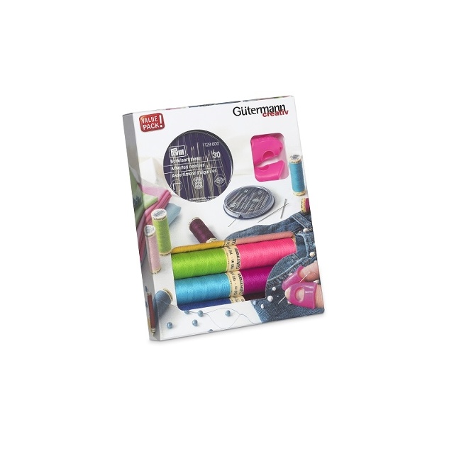 Perfekt nybörjarset med 8 st trådrullar "Alla tygers tråd 100 m" i olika färger och en PRYM nålsortering, samt 2st PRYM nålgreppare av silikon. Gütermann 100 meters polyestertråd är utmärkt lämpad för både symaskin-, overlock- och handsömnad, oavsett typ av söm.