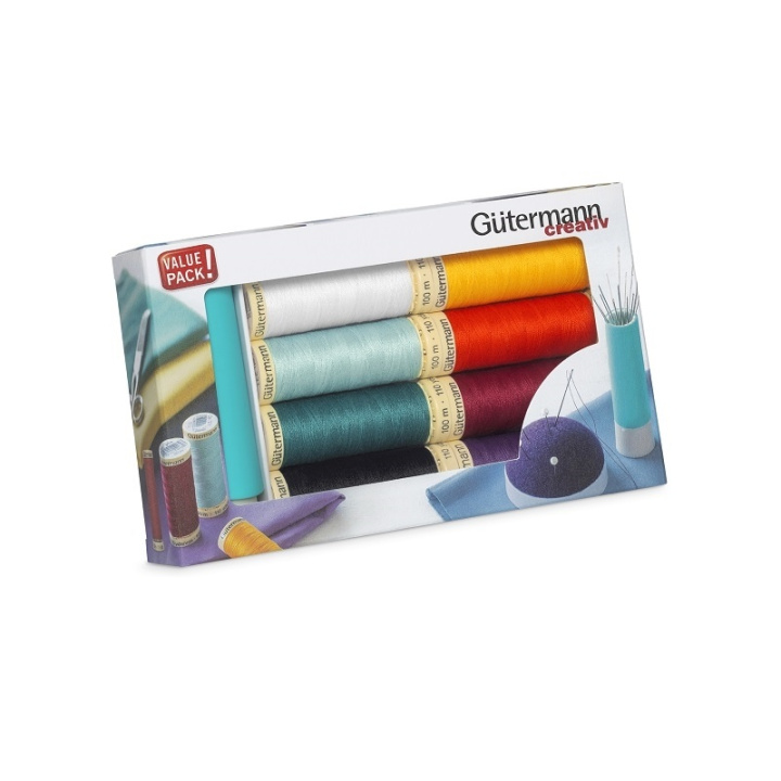 Perfekt nybörjarset med 8 st trådrullar "Alla tygers tråd 100 m" i olika färger och en Nåltwister (praktisk förvaring för synålar) innehållande 19 sy- och brodernålar. Gütermann 100 meters polyestertråd är utmärkt lämpad för både symaskin-, overlock- och handsömnad, oavsett typ av söm. Tvättbar upp till 95 grader.