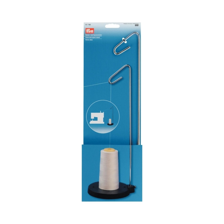 Om du syr mycket med symaskinen går det också åt mycket tråd. Stora trådrullar är ofta koniska till formen och det är viktigt att tråden rullas av rent även när man syr snabbt. Spolhållaren ger ett stabilt grepp och låter rullen stå stadigt. Kon- och spolhållaren från Prym består av en bas i gjutjärn med en inskruvad fäststång av stål och en bom för att styra tråden. Kon- och spolhållaren från Prym säkerställer tillräcklig tillförsel och bibehåller alltid den optimala spänningen på tråden.