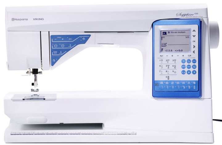 SAPPHIRE™ 930 ingår i Husqvarna Vikings SAPPHIRE-serie och är utvecklad för att ge ett stabilt och effektivt arbetsflöde. Kombinationen av automatiska funktioner och generös arbetsyta gör modellen lämpad för varierade projekt.